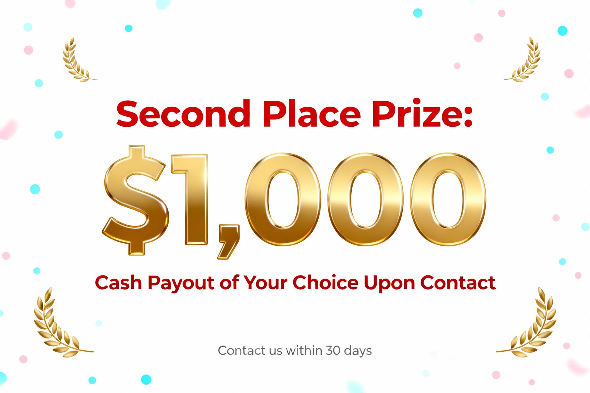 • 2nd Prize: $1,000 cash payout